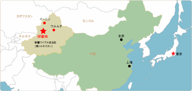 採蜜地は、キルギスタンにほど近い、中国は黄河上流のさらに北。ゴビ砂漠とタクラマカン砂漠の狭間に、ヨーロッパとアジアを結ぶように山岳オアシスとして、天山山脈があります。